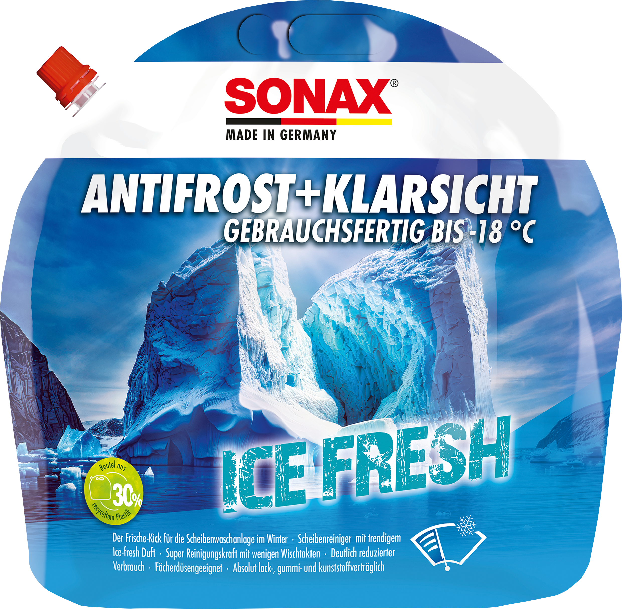 Scheibenreiniger mit trendigem Ice-fresh-Duft für die Scheibenwaschanlage im Winter. Beseitigt Öl, Ruß, Salz und sonstige typische Winterverschmutzungen mit wenigen Wischtakten und damit reduziertem Verbrauch. Verhindert Düsenvereisung und das Einfrieren der Scheibenwaschanlage. Absolut lack-, gummi- und kunststoffverträglich. Verursacht keine Spannungsrisse und Blindstellen an Scheinwerferstreuscheiben. Bestens geeignet für hochwertige Laser-, Matrix-LED- sowie XENON-Scheinwerfer. Getestet auf Mattlacken, folierten Fahrzeugen und empfindlichen Reparaturlacken. Mit Glycerin. Hält Gummi geschmeidig. Kein Rubbeln der Wischerblätter. Fächerdüsentauglich - auch ideal für den Einsatz bei neuen Wischertechnologien.