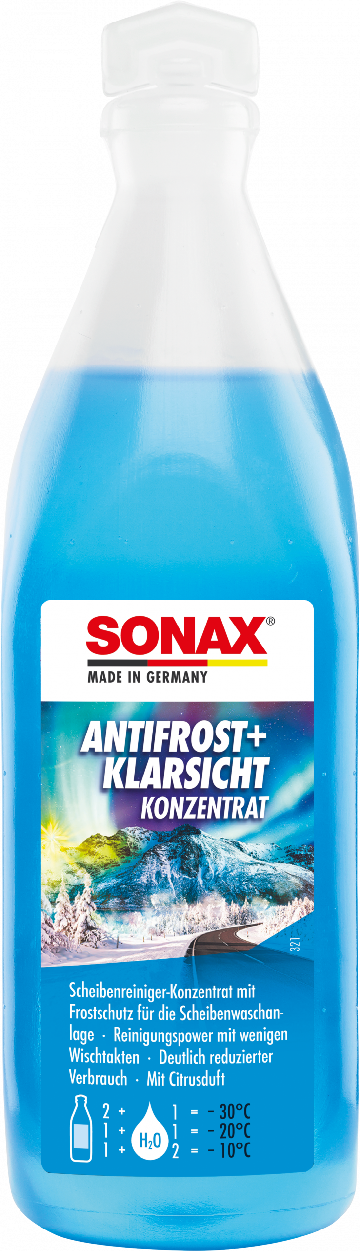 Scheibenreiniger-Konzentrat mit Frostschutz für die Scheibenwaschanlage. Beseitigt Öl, Ruß, Salz und sonstige typische Winterverschmutzungen mit wenigen Wischtakten und damit reduziertem Verbrauch. Verhindert Düsenvereisung und das Einfrieren der Scheibenwaschanlage. Absolut lack-, gummi- und kunststoffverträglich. Verursacht keine Spannungsrisse und Blindstellen an Scheinwerferstreuscheiben. Bestens geeignet für hochwertige Laser-, Matrix-LED- sowie XENON-Scheinwerfer. Getestet auf Mattlacken, folierten Fahrzeugen und empfindlichen Reparaturlacken. Mit Glycerin. Hält Gummi geschmeidig. Kein Rubbeln der Wischerblätter. Fächerdüsentauglich - auch ideal für den Einsatz bei neuen Wischertechnologien. Dank Antikalk-Effekt auch für die Mischung mit hartem Wasser geeignet.