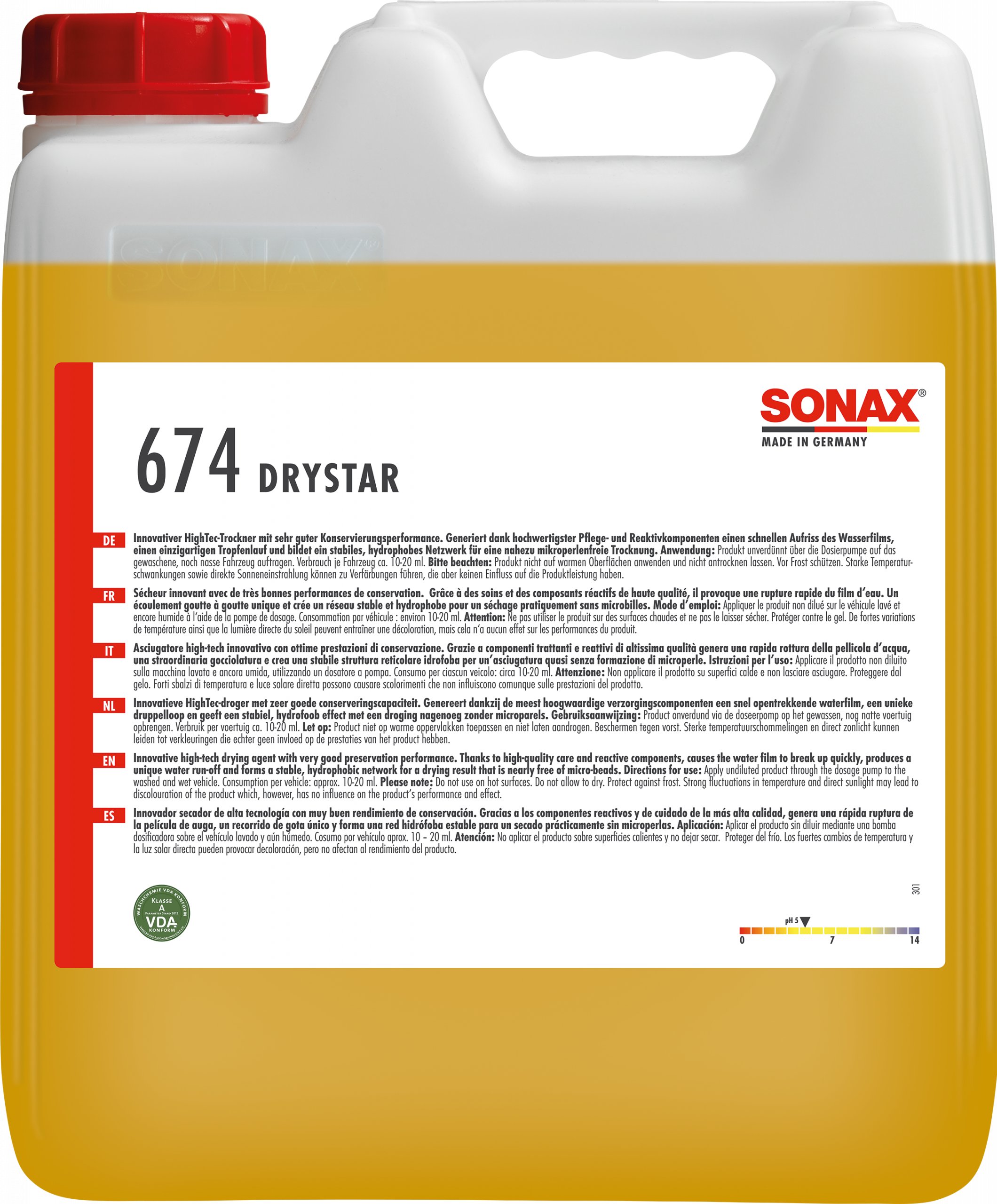 Innovativer HighTec-Trockner mit sehr guter Konservierungsperformance. Generiert dank hochwertigster Pflege- und Reaktivkomponenten einen schnellen Aufriss des Wasserfilms, einen einzigartigen Tropfenlauf und bildet ein stabiles, hydrophobes Netzwerk für eine nahezu mikroperlenfreie Trocknung. Erzeugt keine Schmiereffekte bei Regen für mehr Sicherheit im Straßenverkehr. Arbeitet auch bei kalten Witterungen sowie bei Problemwasser optimal.
