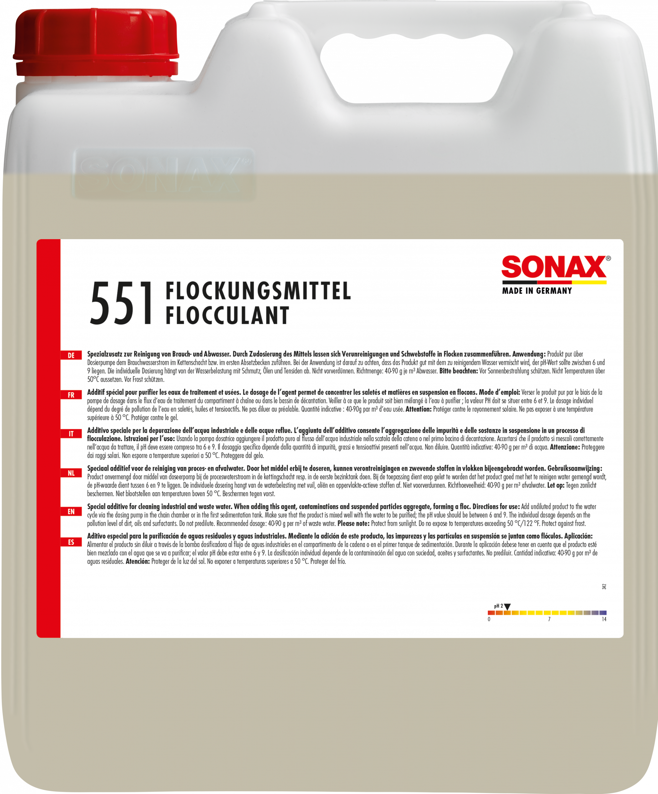 Die individuelle Dosierung hängt von der Wasserbelastung mit Schmutz, Ölen und Tensiden ab. Nicht vorverdünnen.