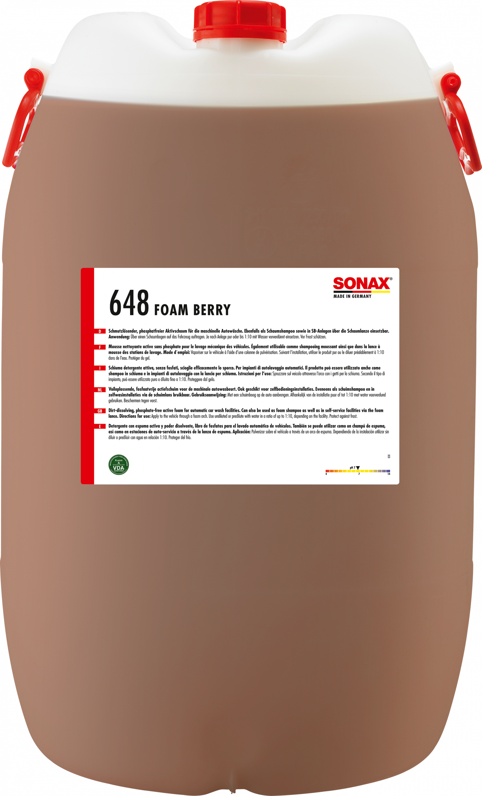 Phosphatfreier Reiniger mit Aktivschaumkraft zur Entfernung von Insekten und anderen angetrockneten Verschmutzungen in der maschinellen Fahrzeugwäsche. Mit fruchtigem Beerenduft.