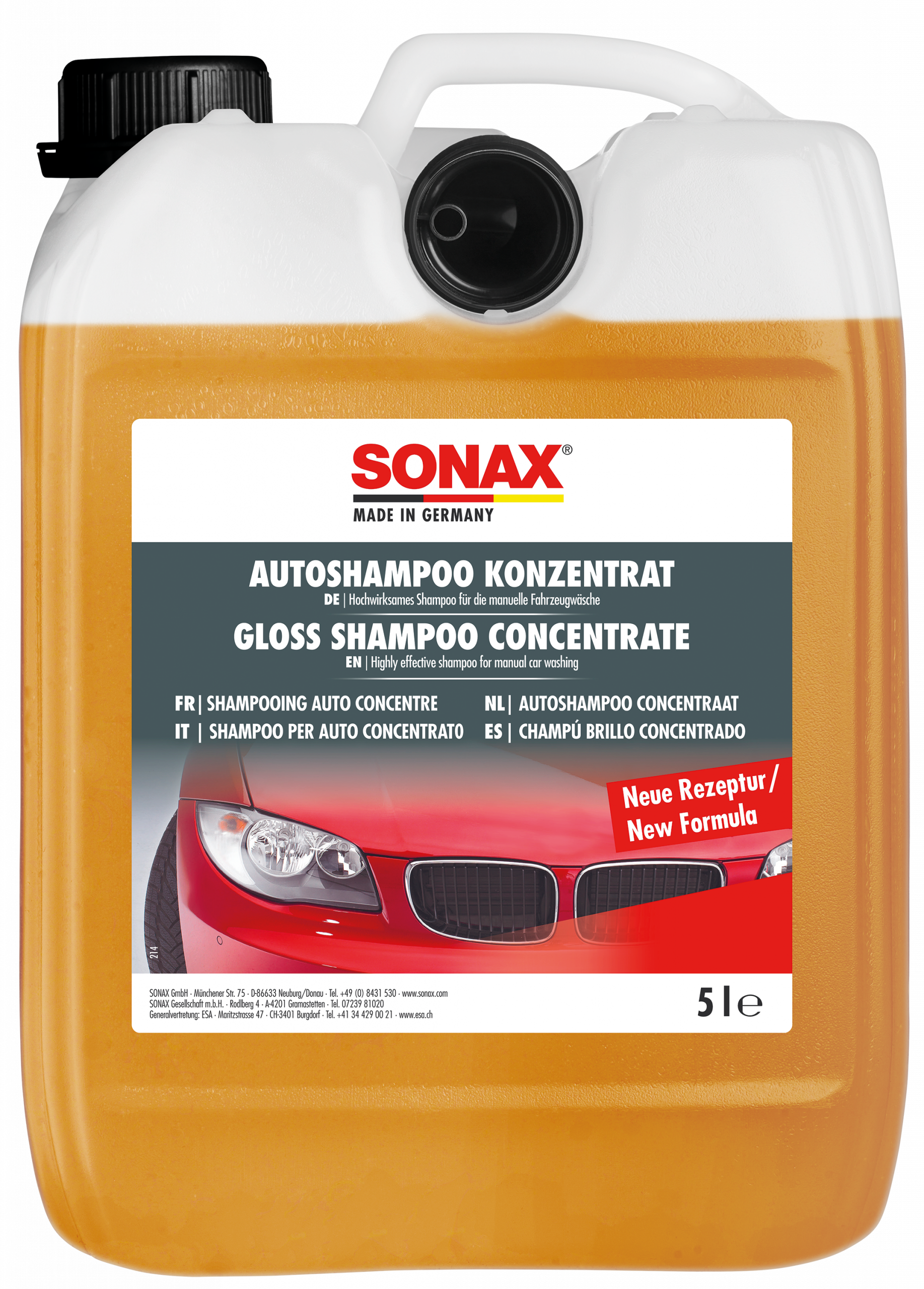 Groben Schmutz vom Fahrzeug mit starkem Wasserstrahl entfernen. Zwei Verschlusskappen SONAX GlanzShampoo in 10 l warmem Wasser auflösen und aufschäumen. Wagen von oben nach unten mit SONAX MultiSchwamm waschen. Anschließend mit viel klarem Wasser abspülen und abledern, da sonst Shampooreste antrocknen können oder Wasserflecken entstehen.