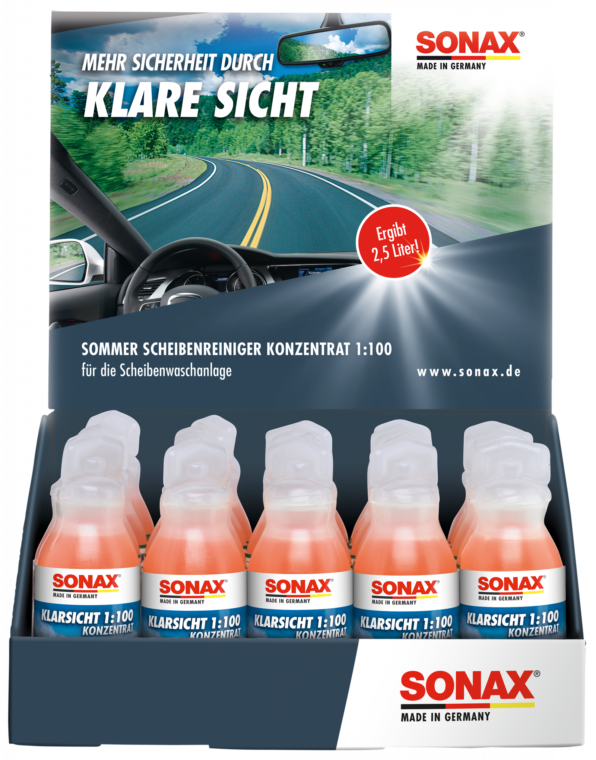 Hochkonzentrierter Reinigungszusatz für die Scheibenwaschanlage im Sommerbetrieb. Entfernt Insekten, Öl, Ruß, Silikon und gefährliche Blend- und Schmierfilme. Kunststoffverträglich – verursacht keine Spannungsrisse und Blindstellen an Scheinwerferstreuscheiben. Für hochwertige Laser-, Matrix-LED- sowie XENON-Scheinwerfer bestens geeignet. Ideal für den Einsatz bei neuen Wischertechnologien und Fächerdüsen. Auch auf Mattlacken, folierten Fahrzeugen und empfindlichen Reparaturlacken getestet. Dank Antikalk-Effekt auch für die Mischung mit hartem Wasser geeignet. Mit frischem Duft.
