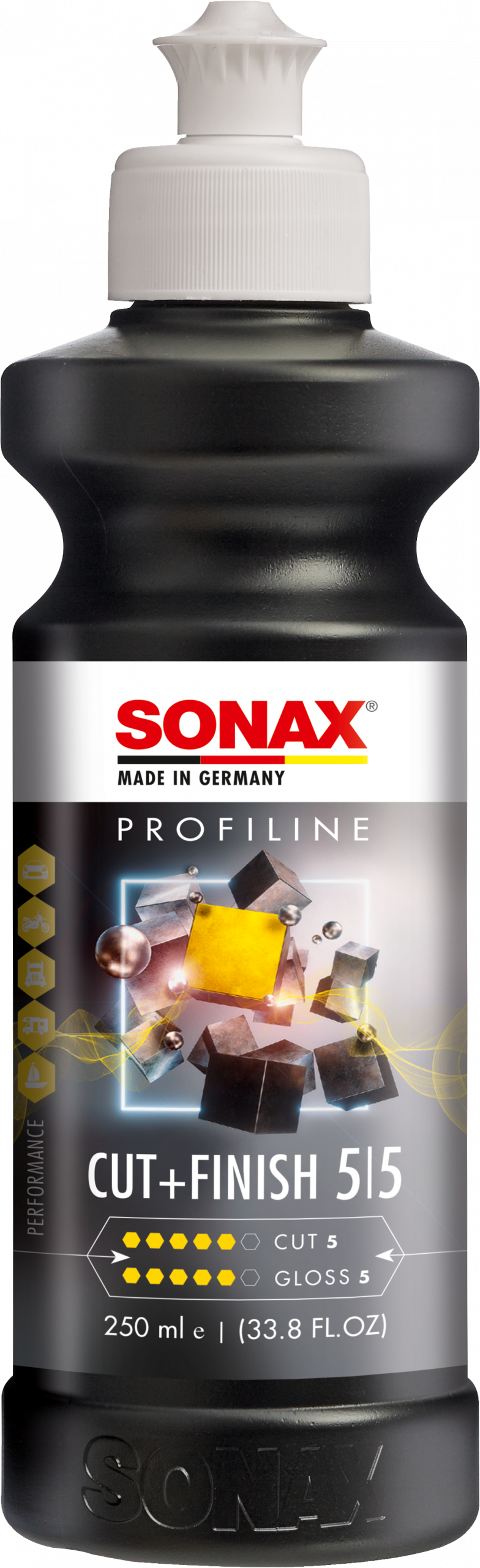 Lack bei Bedarf vorher mit Schleifpapier der Körnung P1500 (oder feiner) anschleifen. Drehzahlregulierbare Rotationspoliermaschine mit SchaumPad hart (04931000) oder SchaumPad medium (04930000) verwenden. Maschinen können am Anfang leicht verkantet werden. Anschließend Pad plan auflegen und vor allem auf frischem Lack mehrere kurze Polierdurchgänge durchführen. Poliermittelrückstände mit SONAX MicrofaserTuch soft touch (04510000) abwischen. Optional und farbtonabhängig kann mit SONAX PROFILINE PerfectFinish (02243000) auf perfekten Hochglanz poliert werden. Verwendung von Exzentermaschine ist möglich, wenn der Verkratzungszustand dies zulässt bzw. die Anschliffe entsprechend P2000 oder feiner platziert sind.