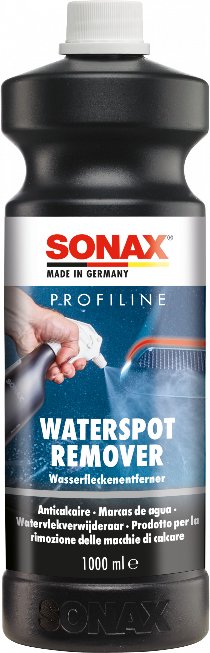 Reiniger zur Entfernung von eingetrockneten Kalk/Wasserflecken durch eingetrocknete Mineralsalze auf allen außenliegenden Fahrzeugoberflächen, auch auf Folierungen und Mattlacken.