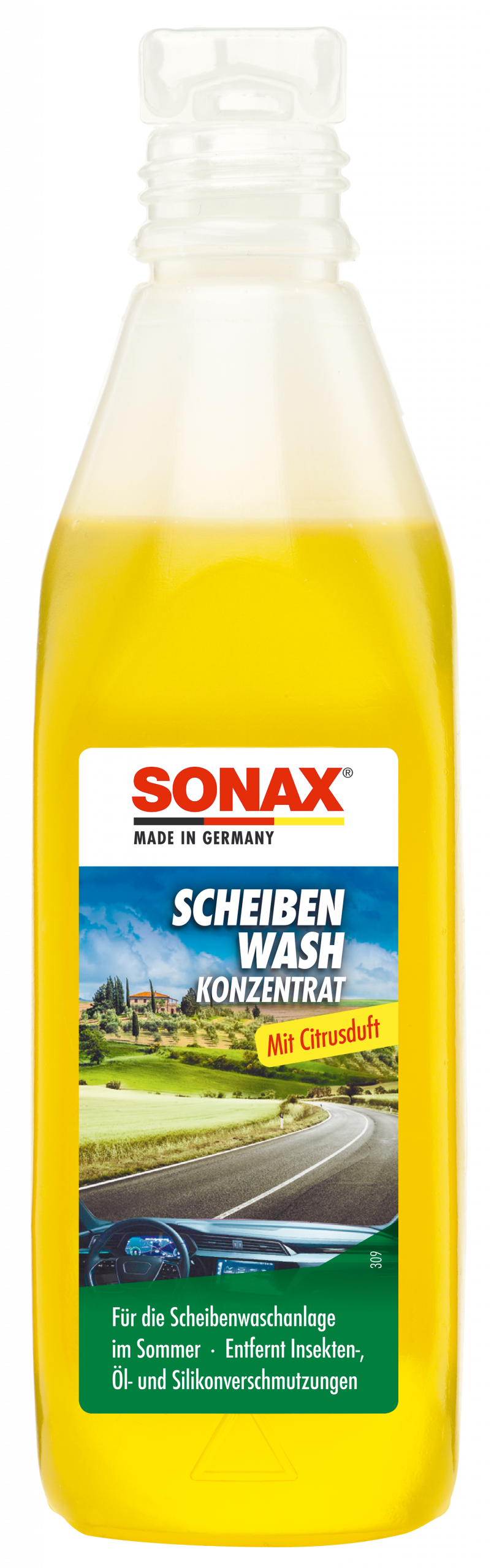 Reinigungskonzentrat für die Scheiben- und Scheinwerferwaschanlage im Sommer. Schafft in Sekunden klare Sicht ohne Streifen und Schlieren. Entfernt gefährliche Blend- und Schmierfilme von Insekten-, Öl- und Silikonverschmutzungen schnell und zuverlässig. Maximale Lack-, Gummi- und Kunststoffverträglichkeit. Verursacht keine Spannungsrisse und Blindstellen an empfindlichen Scheinwerferstreuscheiben. Für hochwertige Laser-, Matrix-LED- sowie XENON-Scheinwerfer bestens geeignet. Ideal für den Einsatz bei neuen Wischertechnologien und Fächerdüsen. Auch auf Mattlacken, folierten Fahrzeugen und empfindlichen Reparaturlacken getestet. Dank Antikalk-Effekt für die Mischung mit hartem Wasser bestens geeignet. Maximale Sicherheit dank minimaler Wischtakte – besonders in kritischen Situationen wie bei Regen, Dunkelheit und Gegenlicht. Mit frischem Citrusduft.